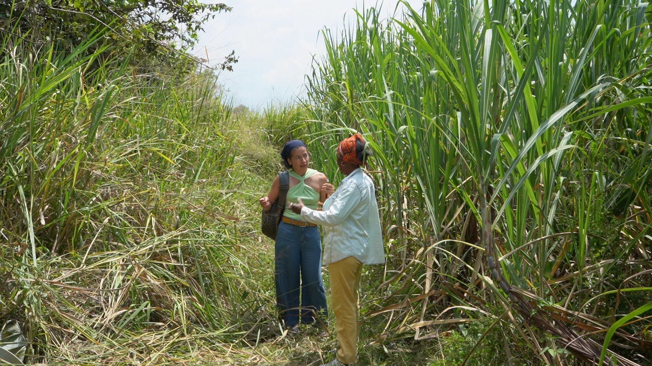 One initiative, about twenty minutes from Cali, is to create a corridor of fincas right through the middle of the sugarcane plantations. We spoke to two Afro-Colombian campesinos who have adjoining fincas and are collaborating with another about ten minutes from their land. In their middle age with grown up children, they themselves are the children of the generation whose land was removed by lies. They hope more campesinos will join them to create this corridor between their two plots, healing the soil and regenerating the local economy.