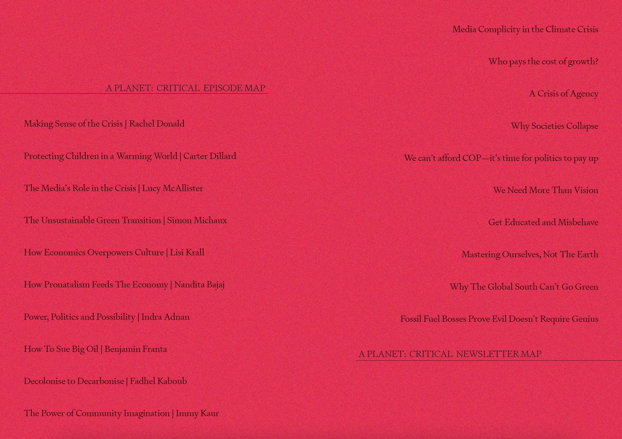 Rachel Donald is a storyteller, sense-maker and climate corruption journalist. She created the Planet: Critical podcast and newsletter to investigate why the world is in crisis—and what to do about it. She is also the curator of WE WILL BEAR WITNESS.