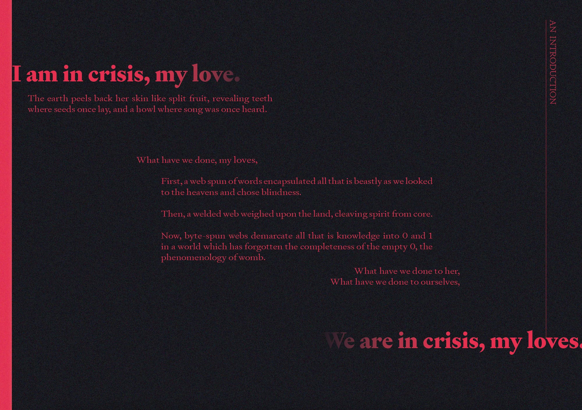 'The Earth peels back her skin like split fruit'